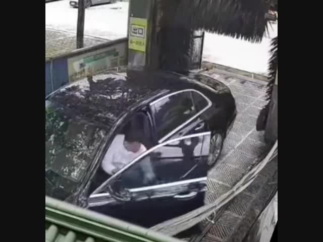 Автомобилистка заехала в минимаркет на автомойке, перепутав передачи. Хорошо, что ей никто не попался на пути.